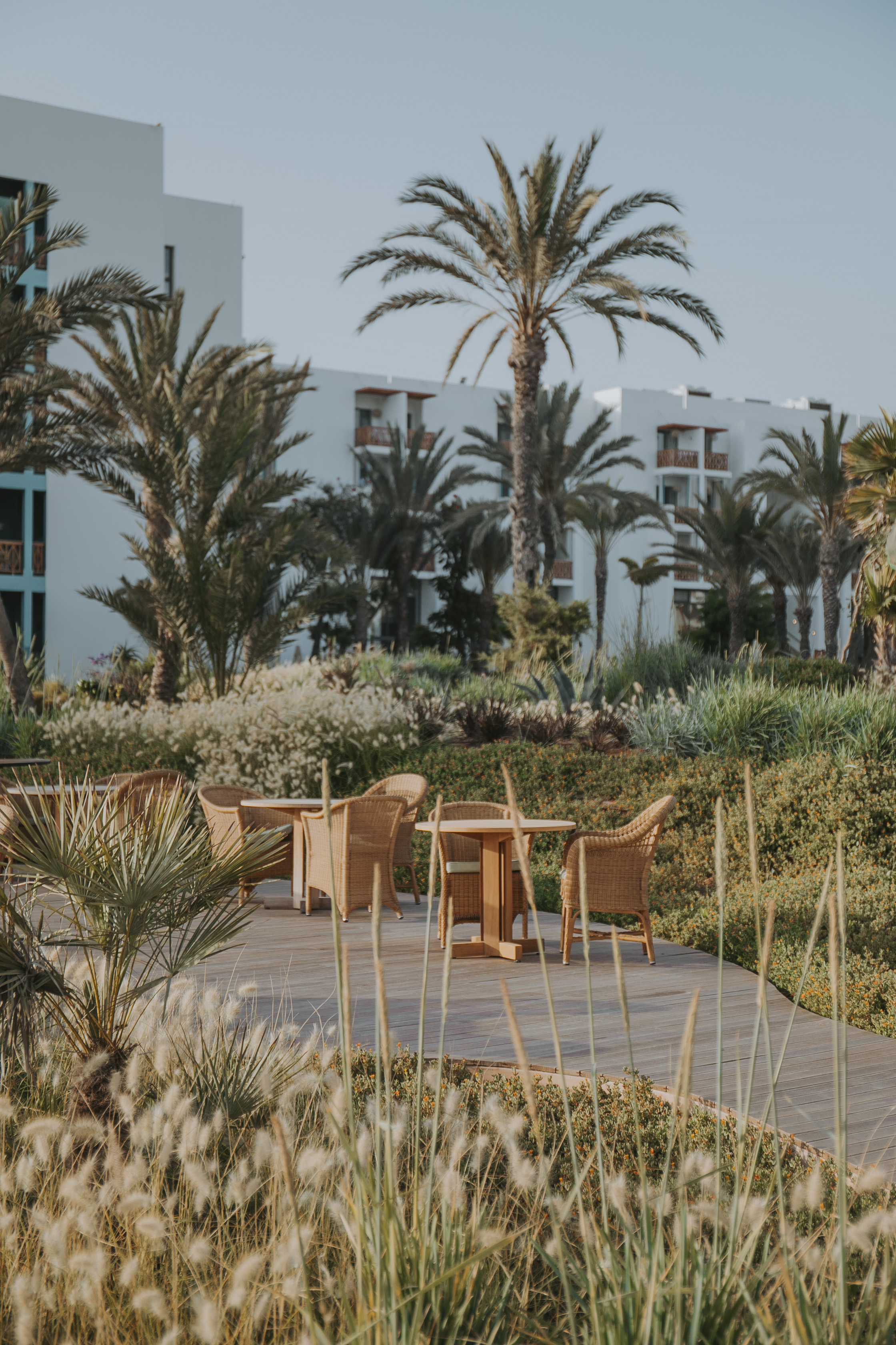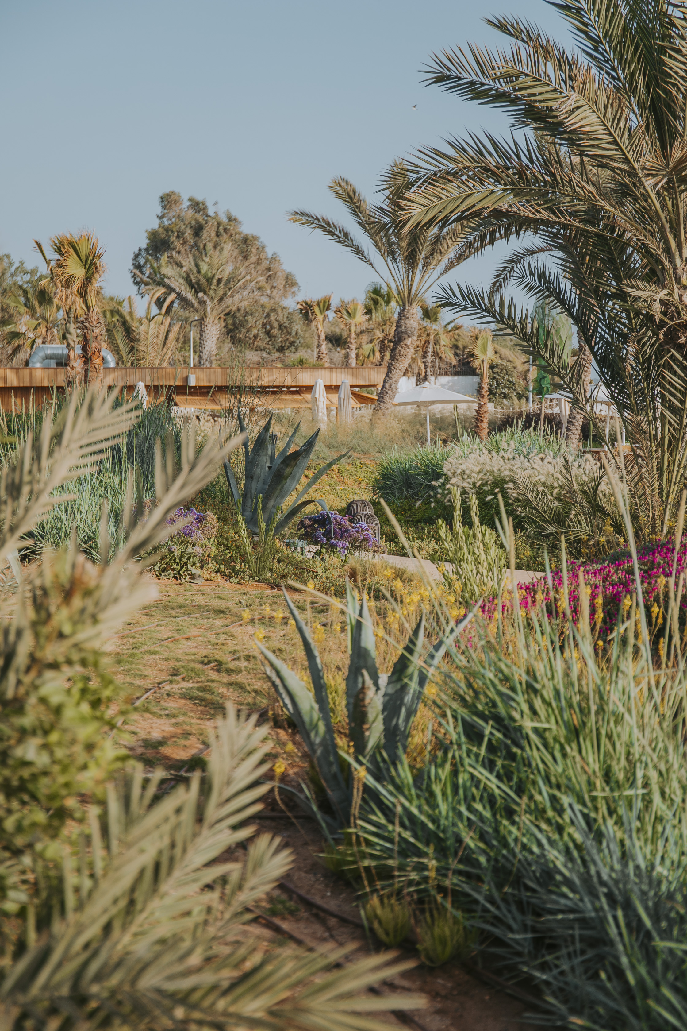 Réhabilité et devenu The View, cet hôtel d’Agadir retrouve une véritable présence végétale. La façade côté ville, autrefois presque entièrement minérale et construite au-dessus d’un vaste sous-sol (discothèque, spa, ballroom), a été transformée en un jardin d’accueil malgré les contraintes techniques. À l’arrière, ouvert sur l’Atlantique, le site offre désormais deux ambiances complémentaires : un jardin littoral résistant aux embruns et un cœur de jardin plus exotique, protégé des vents dominants par l’architecture.